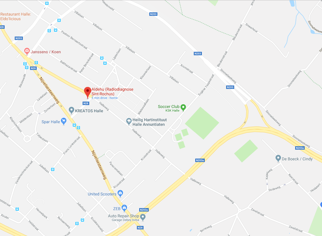 Komt u van de N203A, afrit Halle van de E19, dan neemt u aan de tweede verkeerlichten, ter hoogte van de Steenweg naar Nijvel, rechts richting Halle centrum en dan doorrijden tot de steenweg een éénrichtingsstraat wordt. Dan moet u naar rechts in de leopoldstraat rijden en daar zoekt u nr 37.